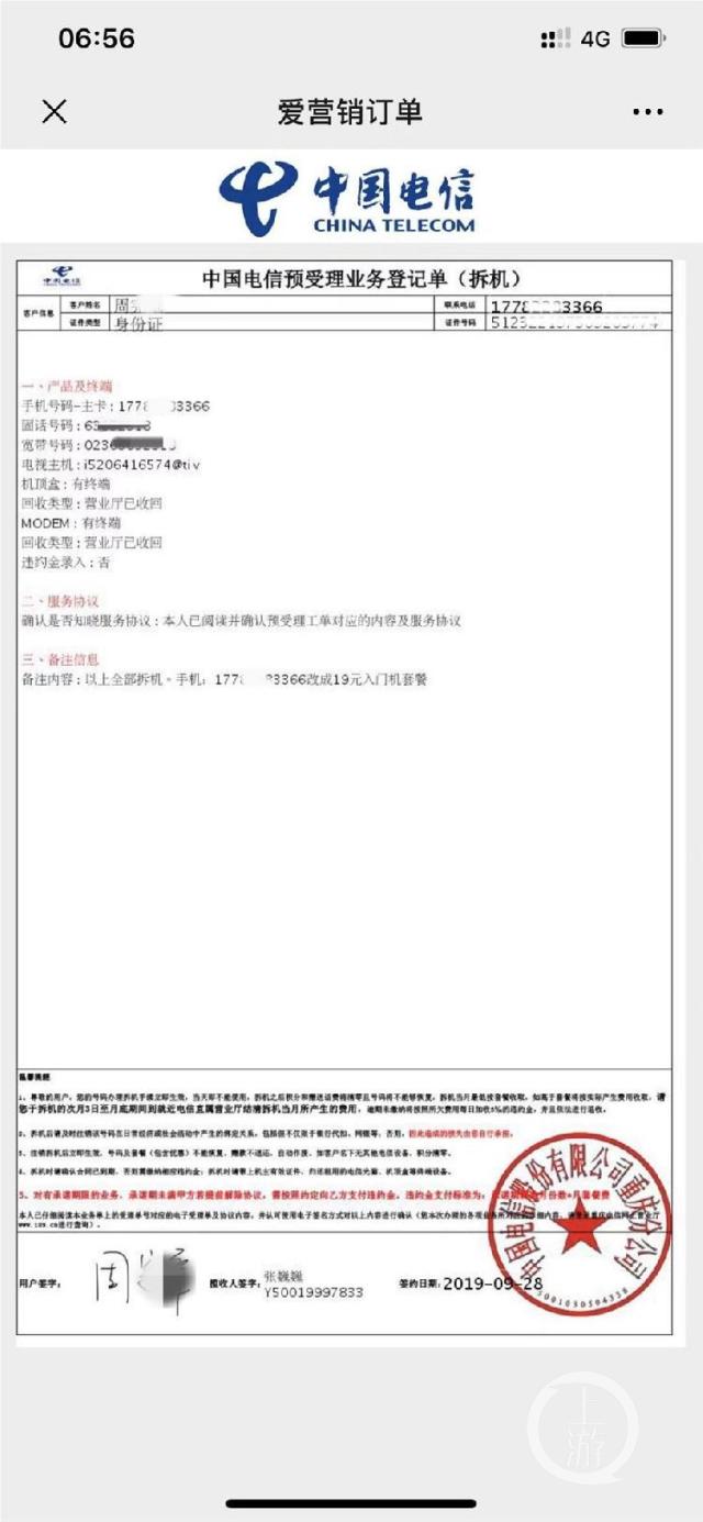 今年9月,周先生到营业厅去更改话费套餐,改为每月最低消费19元,更改成功,还签了合同。