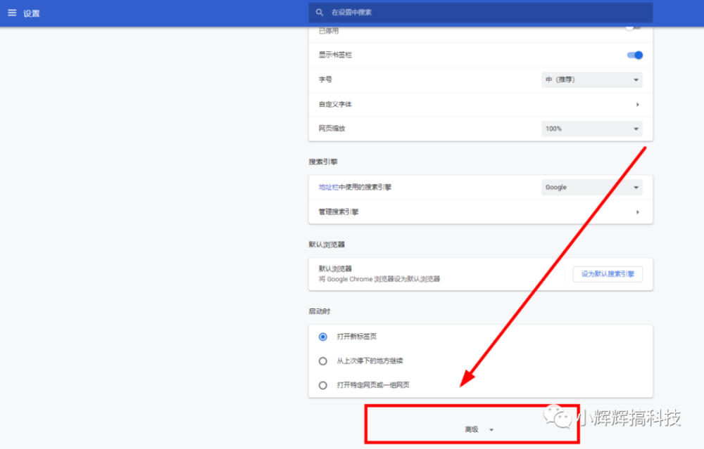 1,下载谷歌浏览器,打开设置,最下方有一个高级设置