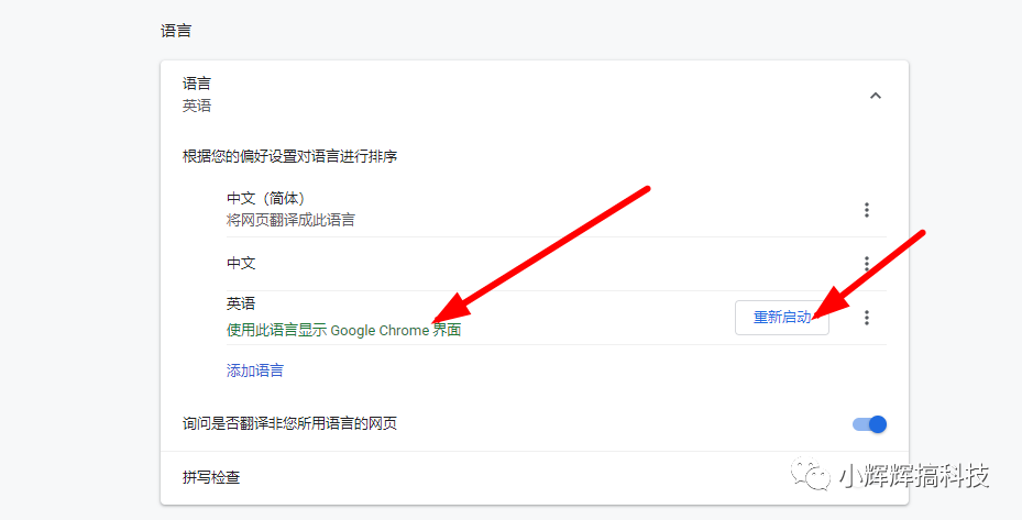 移动到语言选择以英语显示浏览器,没有的你可以添加一下