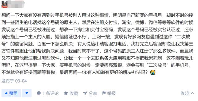 评论区最直接有效的答案是“直接换号”、“再换个号”,有人则建议购买双卡双待手机,再启动新号码之前先预留“半年”时间来验证是否二手。而即使是这些热心答主,在提醒网友避坑二手手机号的同时,也会习惯性地问一句“有更好的解决办法吗?”
